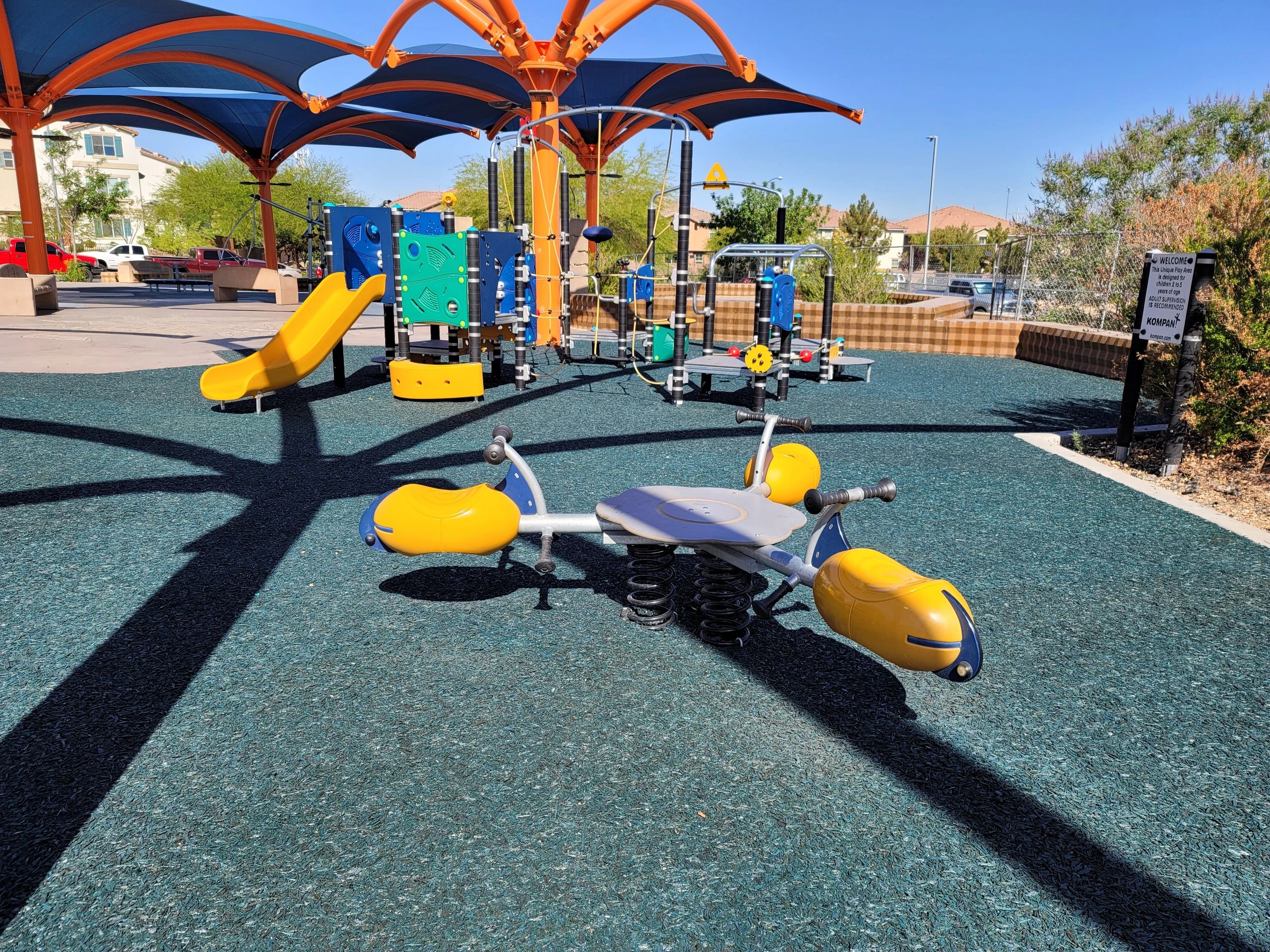 Creative Bonded Bark is a single pour rubber surfacing system. It is comprised of shredded rubber mixed with binder to create a single bonded surface. This method prevents the shredded rubber from migration and displacement. Compared to the two pour TPV/EPDM rubber surfaces, Creative Bonded Bark is cheaper to install, cheaper to maintain, and provides equal amount of protection. The absence of a wear course will eliminate the possibility of unsightly holes and cracks that can appear on TPV or EPDM poured in place surfaces. This surface is ADA compliant, which makes this a great option for schools, public parks, and a variety of other applications where accessibility to play equipment is required.